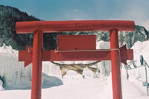 雪の中で赤い